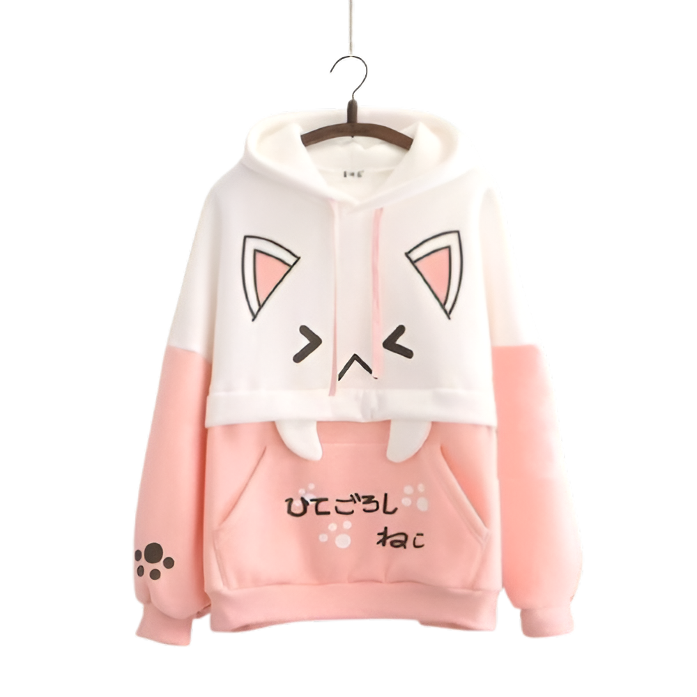 হুডের উপরে বিড়ালের কান এবং সামনে প-এর প্রিন্ট, যা আপনাকে দেবে মিষ্টি লুক।